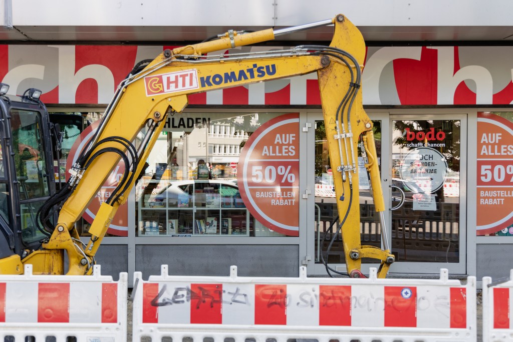 Alles für die Hälfte! Direkt vor unserem Dortmunder Buchladen ist die Baustelle zwar schon weg, aber hin zu kommen dürfte trotzdem nicht einfach werden. Trotzdem: Auch im Juli gibt es in unserem Dortmunder Buchladen alles für die Hälfte!
